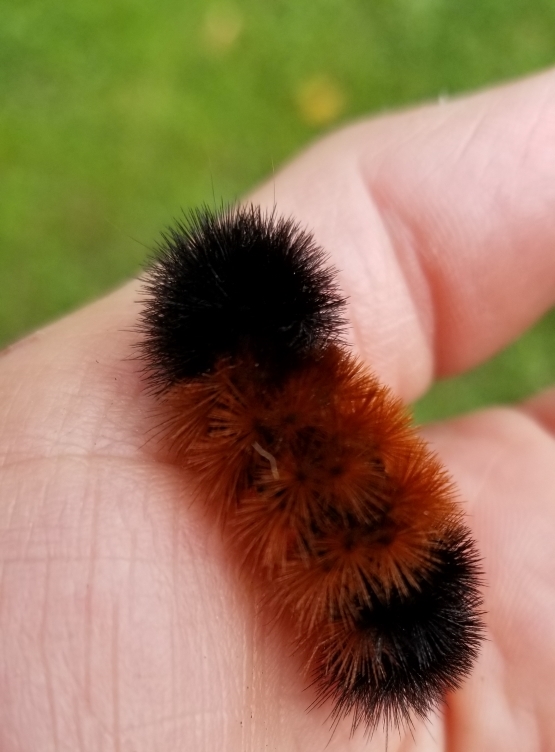 Here’s a wooly bear caterpillar I found in the grass last fall.